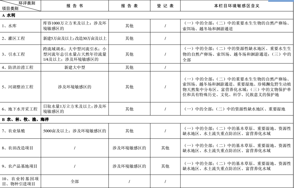 建設(shè)項(xiàng)目環(huán)境影響評價(jià)分類管理名錄