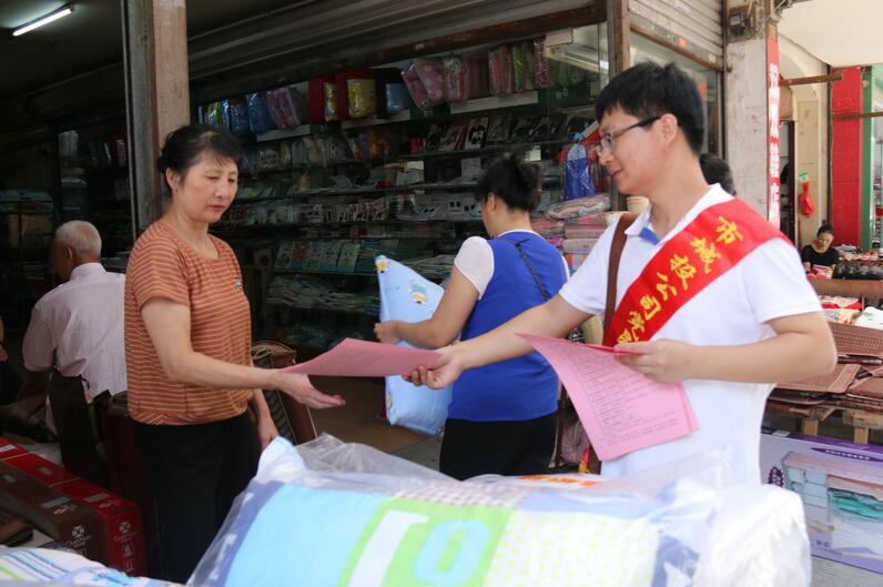志愿者向居民和商業(yè)店鋪發(fā)放宣傳資料《創(chuàng)建全國文明城市倡議書》《創(chuàng)建全國文明城市應(yīng)知應(yīng)會(huì)知識》《創(chuàng)建全國文明城市知識問卷》,向居民和商業(yè)店鋪講解了“創(chuàng)城”的意義,并與執(zhí)法大隊(duì)人員一起對沿街不規(guī)范的店鋪進(jìn)行整改。