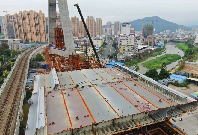 大橋鋼箱梁工程還有19片箱梁,鋼箱梁總長(zhǎng)340米,每片質(zhì)量平均290噸,計(jì)劃8月初全部完成吊裝。與此同時(shí),主塔第一次轉(zhuǎn)體計(jì)劃于4月中旬實(shí)施,第二次轉(zhuǎn)體計(jì)劃在8月底,確保年底大橋通車。